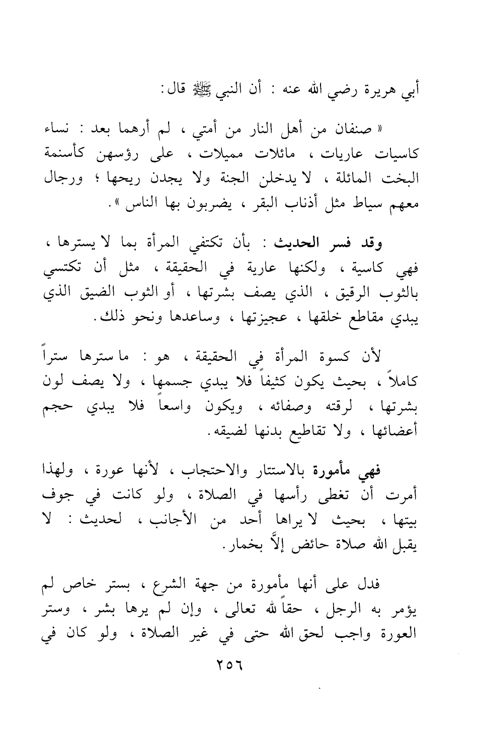 "صنفان من أهل النار من أمتي، لم أرهما بعد: نساء كاسيات عاريات، مائلات مميلات، على رؤسهن كأسنمة البخت المائلة، لا يدخلن الجنة ولا يجدن ريحها، ورجال معهم سياط مثل أذناب البقر، يضربون بها الناس" 1.