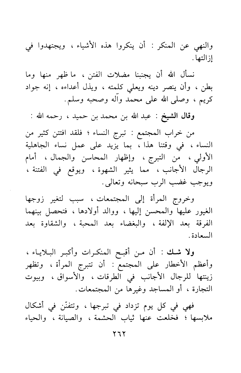 [قول الشيخ عبد الله بن حميد رحمه الله: من خراب المجتمع تبرج النساء]