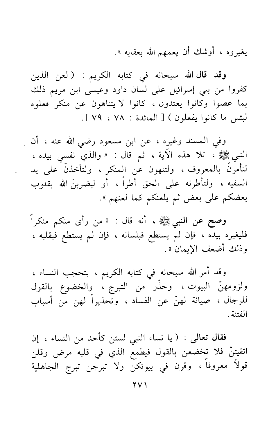 وقد قال الله سبحانه في كتابه الكريم: {لُعِنَ الَّذِينَ كَفَرُوا مِنْ بَنِي إِسْرائيلَ عَلَى لِسَانِ دَاوُدَ وَعِيسَى ابْنِ مَرْيَمَ ذَلِكَ بِمَا عَصَوْا وَكَانُوا يَعْتَدُونَ كَانُوا لا يَتَنَاهَوْنَ عَنْ مُنْكَرٍ فَعَلُوهُ لَبِئْسَ مَا كَانُوا يَفْعَلُونَ} 2