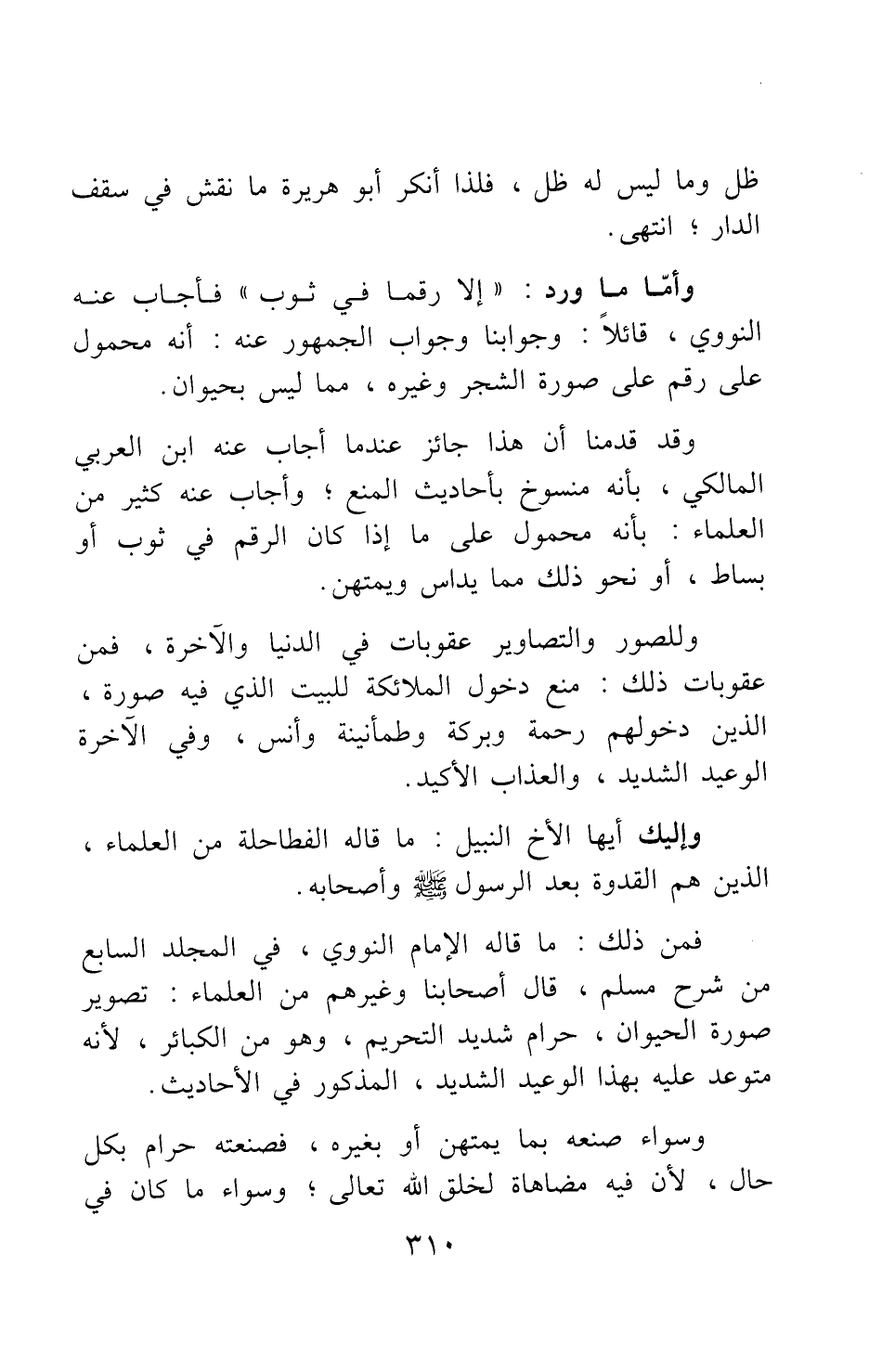 فمن ذلك: ما قاله الإمام النووي، في المجلد السابع من شرح مسلم: قال أصحابنا وغيرهم من العلماء: تصوير صورة الحيوان، حرام شديد التحريم، وهو من الكبائر، لأنه متوعد عليه بهذا الوعيد الشديد المذكور في الأحاديث.