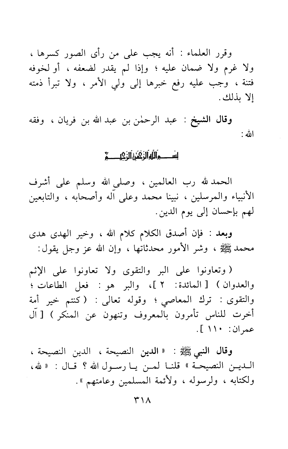 وبعد: فإن أصدق الكلام كلام الله، وخير الهدى هدى محمد صلى الله عليه وسلم، وشر الأمور محدثاتها، وإن الله عز وجل يقول: {وَتَعَاوَنُوا عَلَى الْبِرِّ وَالتَّقْوَى وَلا تَعَاوَنُوا عَلَى الْأِثْمِ وَالْعُدْوَانِ} [سورة المائدة آية: 2] والبر هو: فعل الطاعات; والتقوى: ترك المعاصي; وقوله تعالى: {كُنْتُمْ خَيْرَ أُمَّةٍ أُخْرِجَتْ لِلنَّاسِ تَأْمُرُونَ بِالْمَعْرُوفِ وَتَنْهَوْنَ عَنِ الْمُنْكَرِ} [سورة آل عمران آية: 110] .