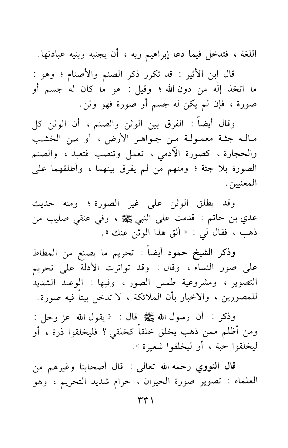 اللغة، فتدخل فيما دعا إبراهيم ربه أن يجنبه وبنيه عبادتها.