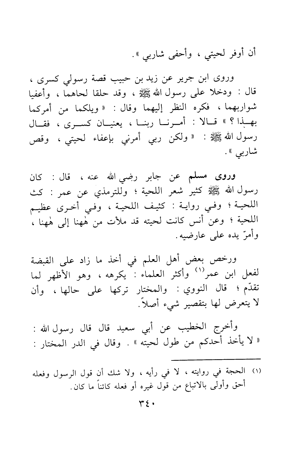 وروى ابن جرير عن زيد بن حبيب قصة رسول كسرى، قال: "ودخلا على رسول الله صلى الله عليه وسلم وقد حلقا لحاهما، وأعفيا شواربهما، فكره النظر إليهما وقال: ويلكما من أمركما بهذا؟ قالا: أمرنا ربنا، يعنيان كسرى، فقال رسول الله صلى الله عليه وسلم: ولكن ربي أمرني بإعفاء لحيتي، وقصّ شاربي".