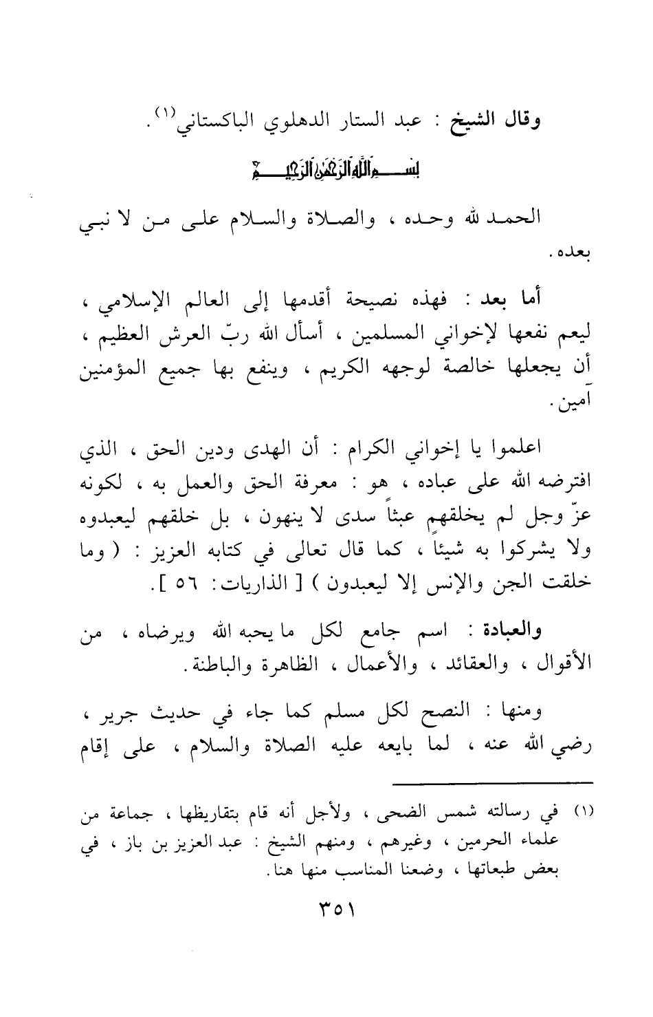 وقال الشيخ: عبد الستار الدهلوي الباكستاني 1: