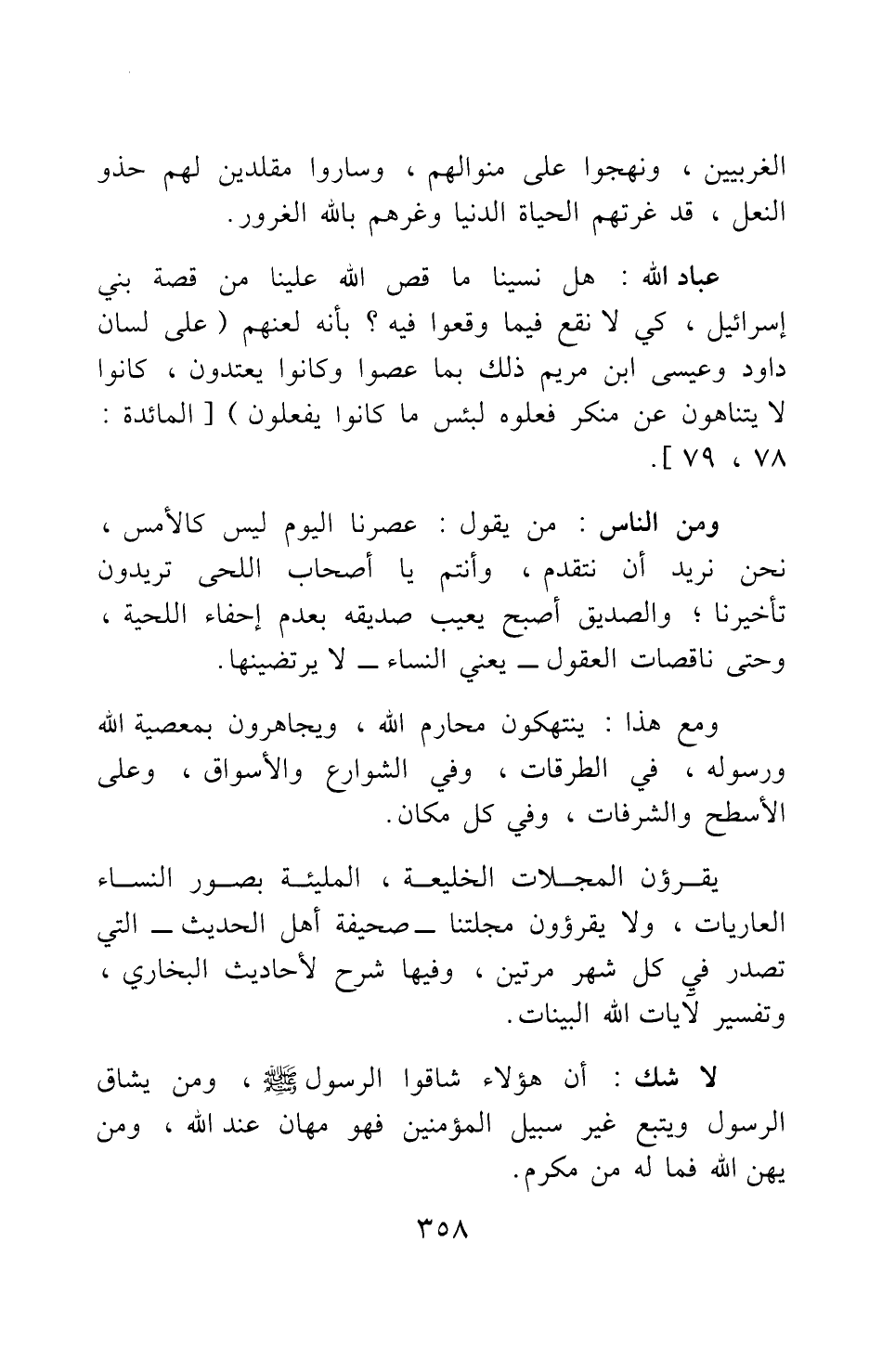 يقرؤون المجلات الخليعة، المليئة بصور النساء العاريات، ولا يقرؤون مجلتنا - صحيفة أهل الحديث - التي تصدر في كل شهر مرتين، وفيها شرح لأحاديث البخاري، وتفسير لآيات الله البينات.