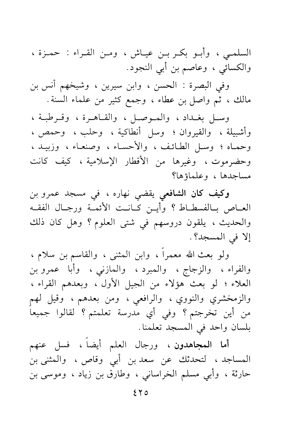 وسل بغداد، والموصل، والقاهرة، وقرطبة، وأشبيلة، والقيروان; وسل أنطاكية، وحلب، وحمص، وحماه; وسل الطائف، والأحساء، وصنعاء، وزبيد، وحضرموت، وغيرها من الأقطار الإسلامية، كيف كانت مساجدها، وعلماؤها؟