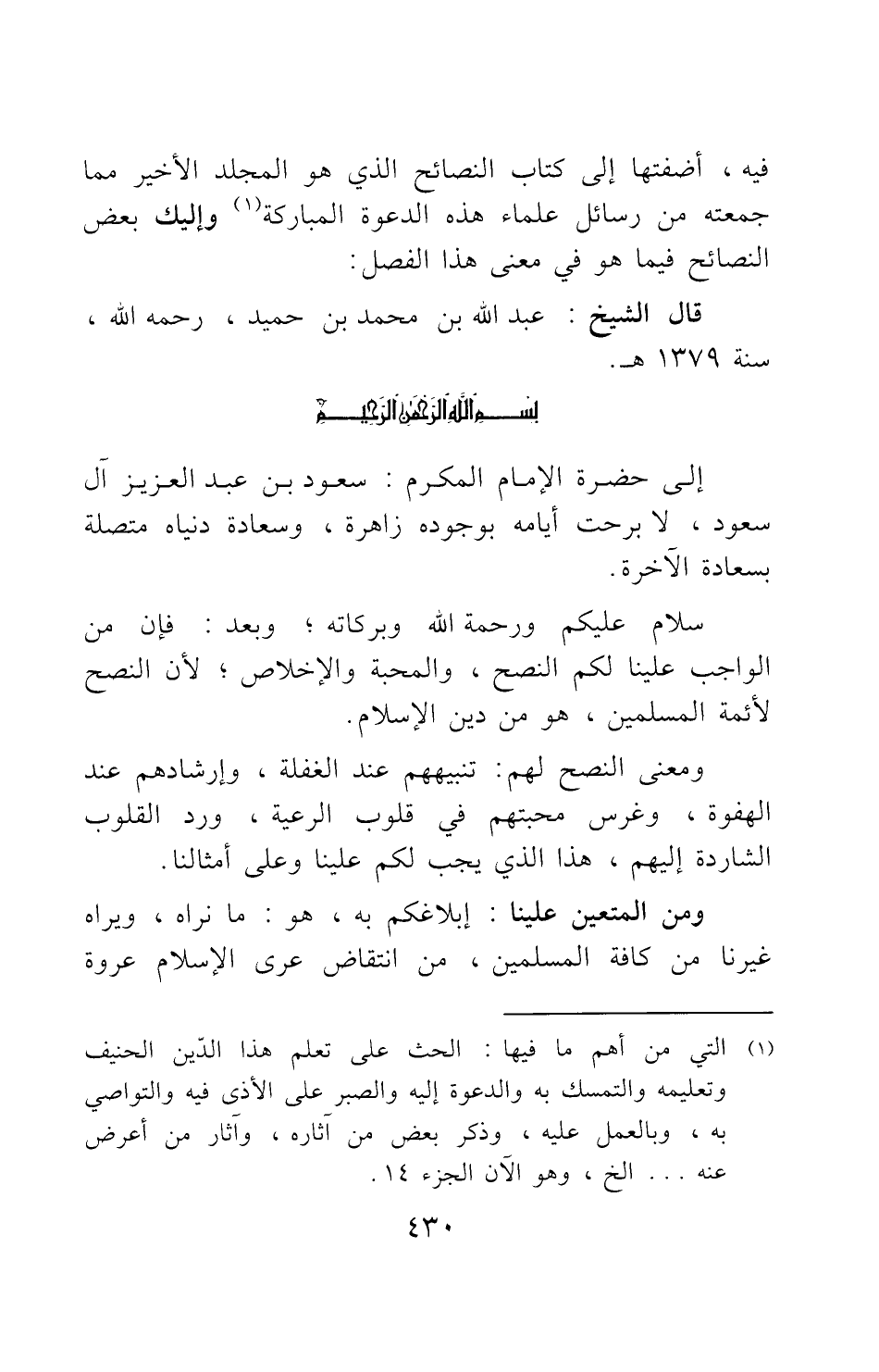 قال الشيخ: عبد الله بن محمد بن حميد، رحمه الله، سنة 1379 هـ.