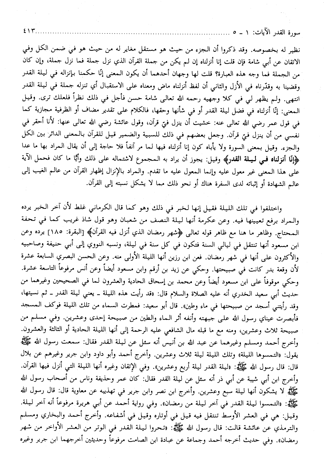 وأخرج أحمد ومسلم وغيرهما عن عبد الله بن أنيس أنه سئل عن ليلة القدر فقال: سمعت رسول الله صلّى الله عليه وسلم يقول: «التمسوها الليلة» وتلك الليلة ليلة ثلاث وعشرين.
