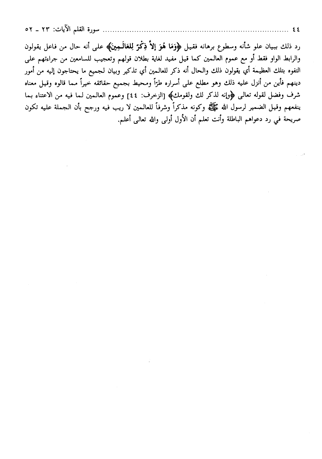 رد ذلك ببيان علو شأنه وسطوع برهانه فقيل وَما هُوَ إِلَّا ذِكْرٌ لِلْعالَمِينَ على أنه حال من فاعل يقولون والرابط الواو فقط أو مع عموم العالمين كما قيل مفيد لغاية بطلان قولهم وتعجيب للسامعين من جراءتهم على التفوه بتلك العظيمة أي يقولون ذلك والحال أنه ذكر للعالمين أي تذكير وبيان لجميع ما يحتاجون إليه من أمور دينهم فأين من أنزل عليه ذلك وهو مطلع على أسراره طرّا ومحيط بجميع حقائقه خيرا مما قالوه وقيل معناه شرف وفضل لقوله تعالى وَإِنَّهُ لَذِكْرٌ لَكَ وَلِقَوْمِكَ [الزخرف: 44] وعموم العالمين لما فيه من الاعتناء بما ينفعهم وقيل الضمير لرسول الله صلّى الله عليه وسلم وكونه مذكرا وشرفا للعالمين لا ريب فيه ورجح بأن الجملة عليه تكون صريحة في رد دعواهم الباطلة وأنت تعلم أن الأول أولى والله تعالى أعلم.