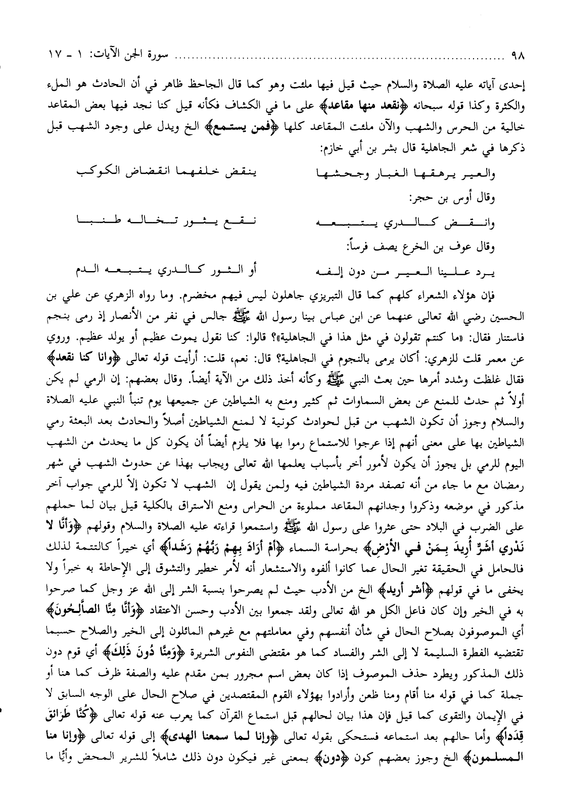 إحدى آياته عليه الصلاة والسلام حيث قيل فيها ملئت وهو كما قال الجاحظ ظاهر في أن الحادث هو الملء والكثرة وكذا قوله سبحانه نَقْعُدُ مِنْها مَقاعِدَ على ما في الكشاف فكأنه قيل كنا نجد فيها بعض المقاعد خالية من الحرس والشهب والآن ملئت المقاعد كلها فَمَنْ يَسْتَمِعِ إلخ ويدل على وجود الشهب قبل ذكرها في شعر الجاهلية قال بشر بن أبي خازم: