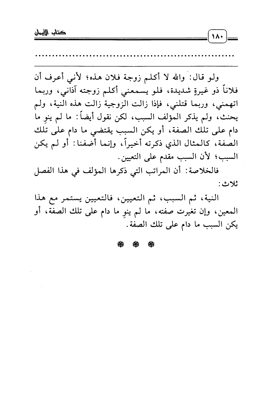 ولو قال: والله لا أكلم زوجة فلان هذه؛ لأني أعرف أن فلاناً ذو غيرةٍ شديدة، فلو يسمعني أكلم زوجته آذاني، وربما اتهمني، وربما قتلني، فإذا زالت الزوجية زالت هذه النية، ولم يحنث، ولم يذكر المؤلف السبب، لكن نقول أيضاً: ما لم ينوِ ما دام على تلك الصفة، أو يكن السبب يقتضي ما دام على تلك الصفة، كالمثال الذي ذكرته أخيراً، وإنما أضفنا: أو لم يكن السبب؛ لأن السبب مقدم على التعيين.