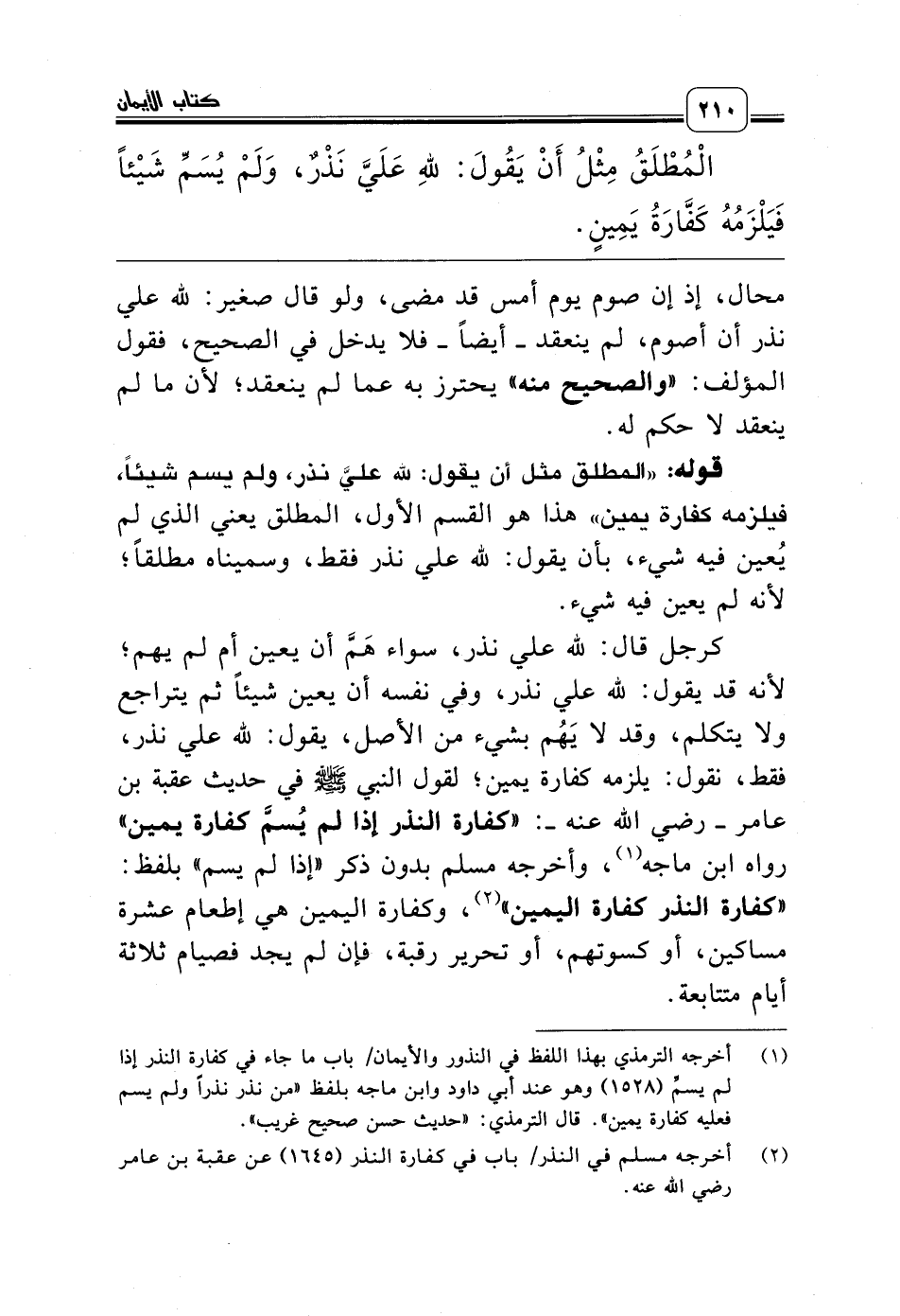 (¬2) أخرجه مسلم في النذر/ باب في كفارة النذر (1645) عن عقبة بن عامر رضي الله عنه.