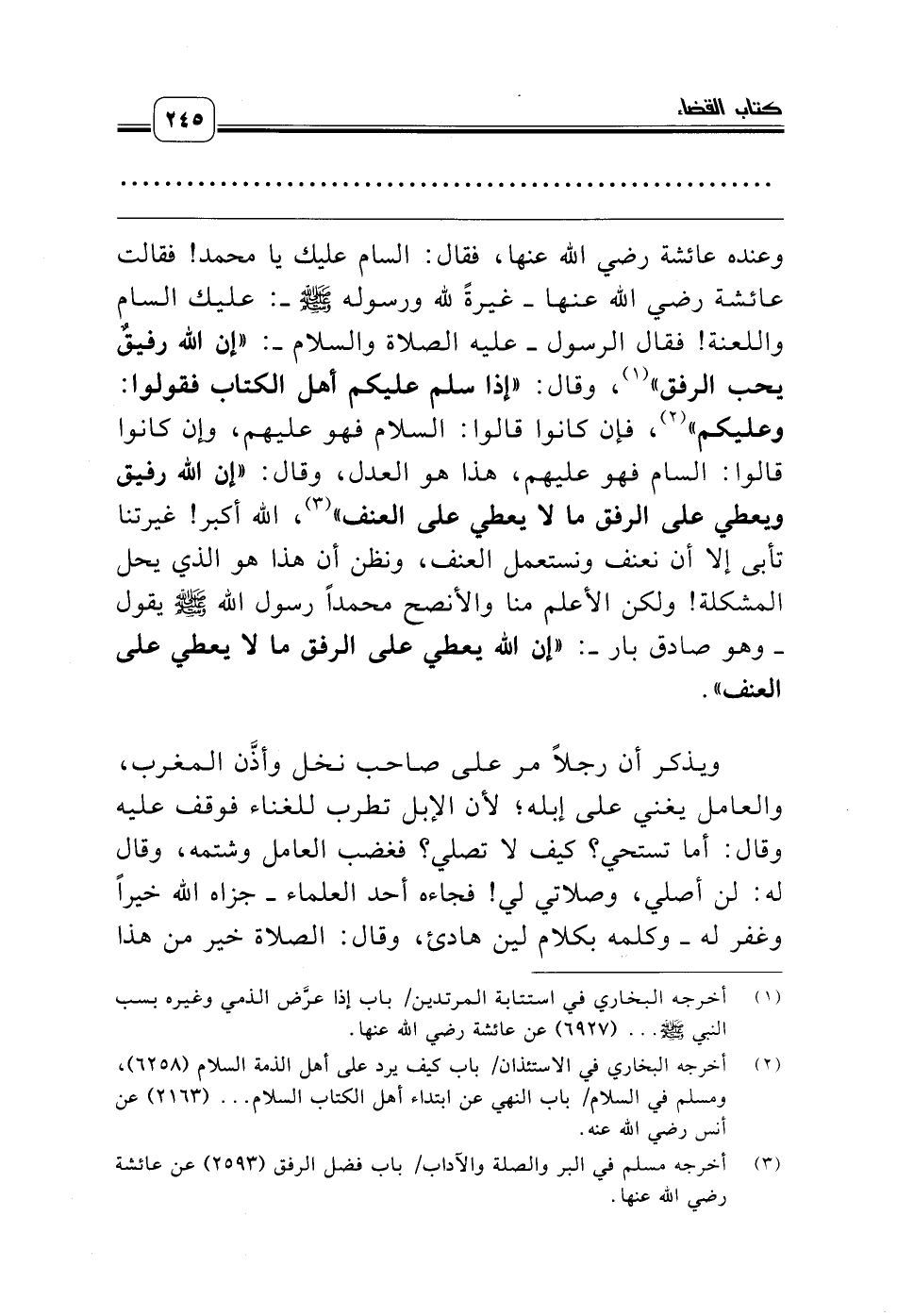 (¬3) أخرجه مسلم في البر والصلة والآداب/ باب فضل الرفق (2593) عن عائشة رضي الله عنها.