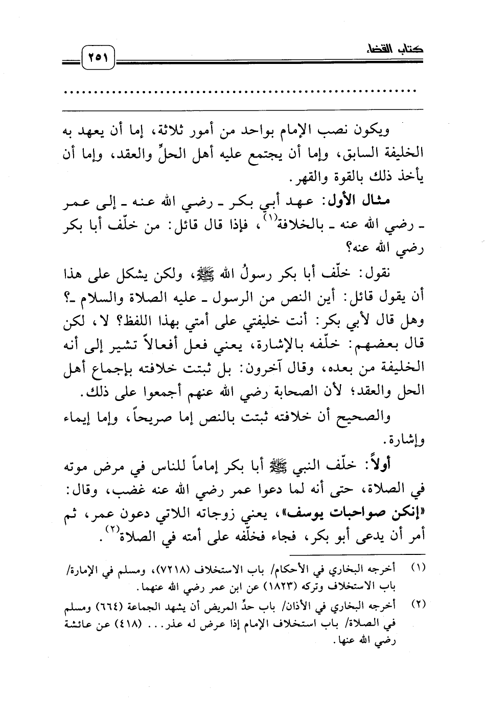 (¬1) أخرجه البخاري في الأحكام/ باب الاستخلاف (7218)، ومسلم في الإمارة/ باب الاستخلاف وتركه (1823) عن ابن عمر رضي الله عنهما.