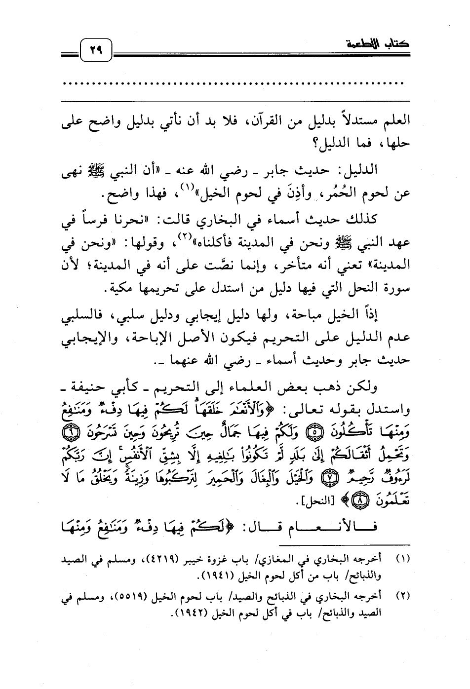 (¬2) أخرجه البخاري في الذبائح والصيد/ باب لحوم الخيل (5519)، ومسلم في الصيد والذبائح/ باب في أكل لحوم الخيل (1942).