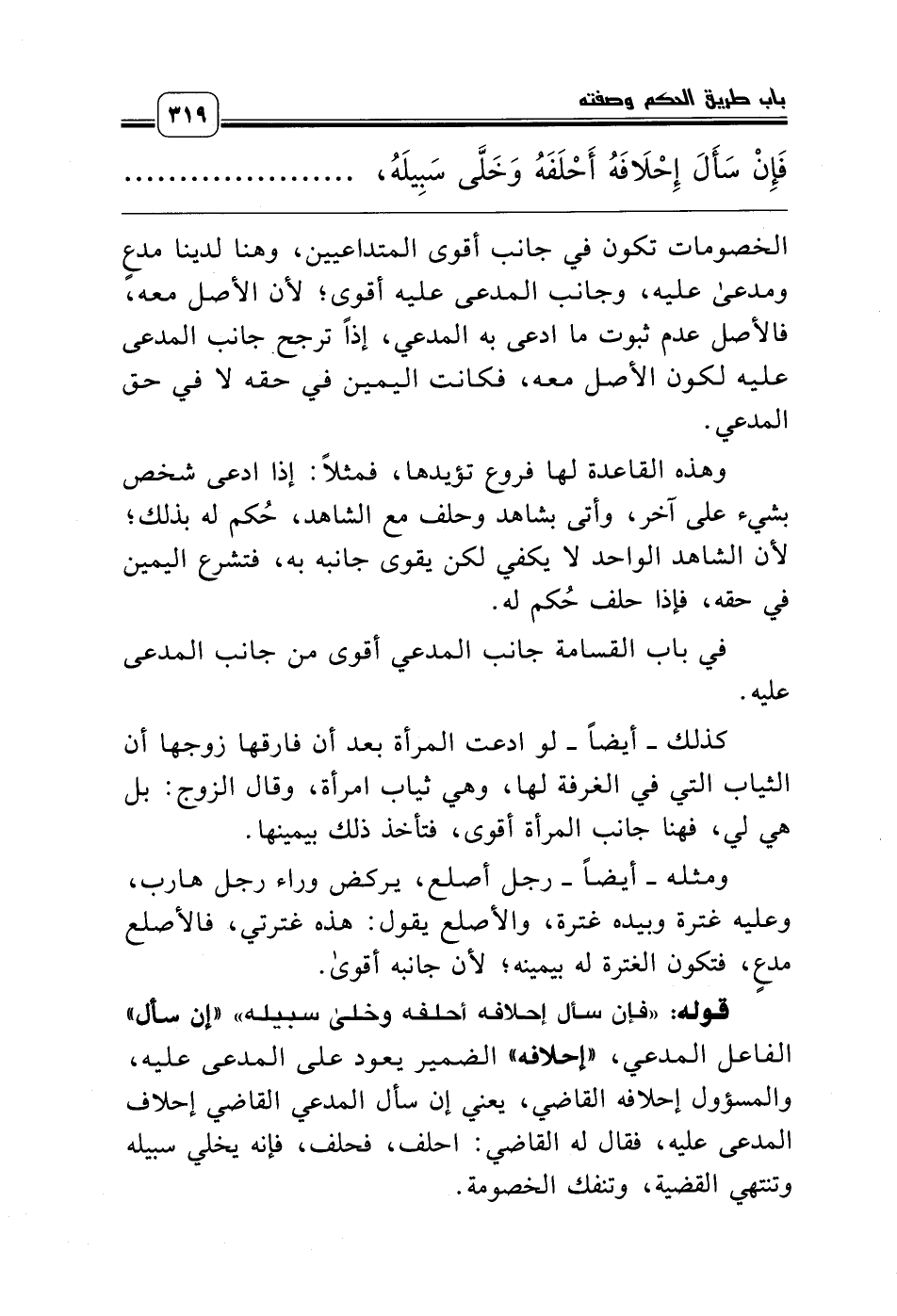 قوله: «فإن سأل إحلافه أحلفه وخلى سبيله» «إن سأل» الفاعل المدعي، «إحلافه» الضمير يعود على المدعى عليه، والمسؤول إحلافه القاضي، يعني إن سأل المدعي القاضي إحلاف المدعى عليه، فقال له القاضي: احلف، فحلف، فإنه يخلي سبيله وتنتهي القضية، وتنفك الخصومة.