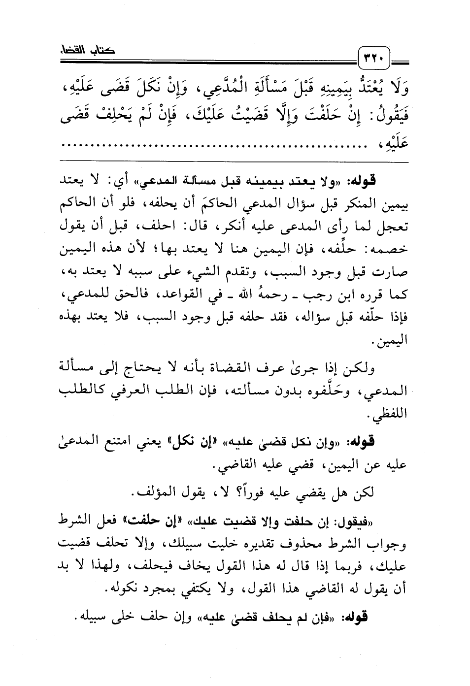 «فيقول: إن حلفت وإلا قضيت عليك» «إن حلفت» فعل الشرط وجواب الشرط محذوف تقديره خليت سبيلك، وإلا تحلف قضيت عليك، فربما إذا قال له هذا القول يخاف فيحلف، ولهذا لا بد أن يقول له القاضي هذا القول، ولا يكتفي بمجرد نكوله.
