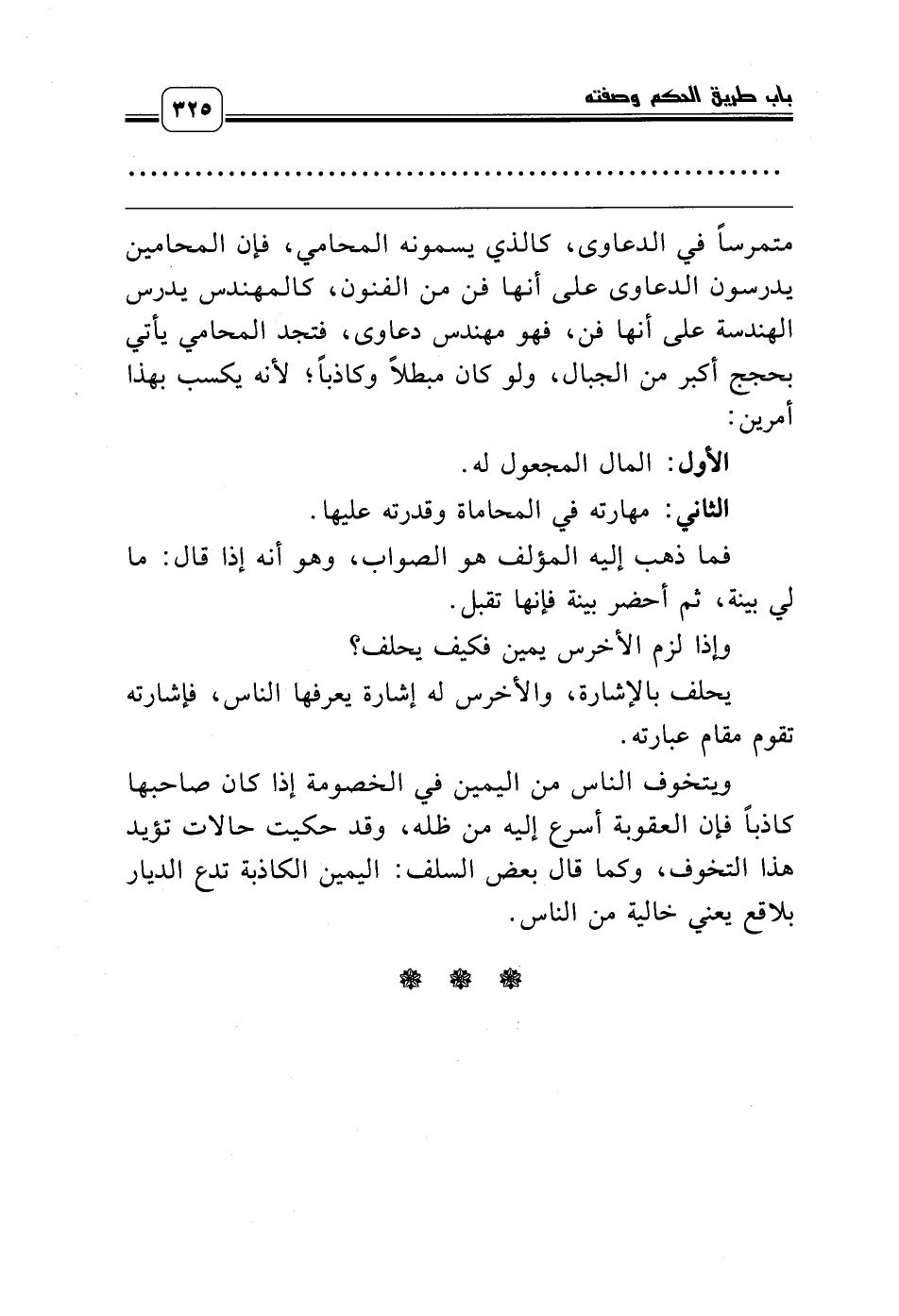 متمرساً في الدعاوى، كالذي يسمونه المحامي، فإن المحامين يدرسون الدعاوى على أنها فن من الفنون، كالمهندس يدرس الهندسة على أنها فن، فهو مهندس دعاوى، فتجد المحامي يأتي بحجج أكبر من الجبال، ولو كان مبطلاً وكاذباً؛ لأنه يكسب بهذا أمرين: