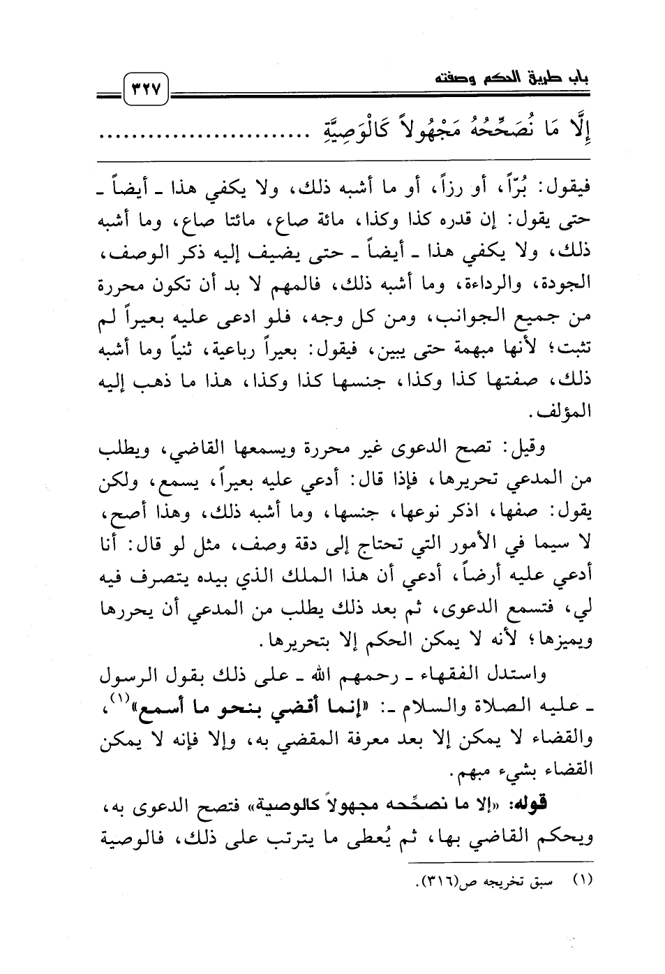 قوله: «إلا ما نصحِّحه مجهولاً كالوصية» فتصح الدعوى به، ويحكم القاضي بها، ثم يُعطى ما يترتب على ذلك، فالوصية