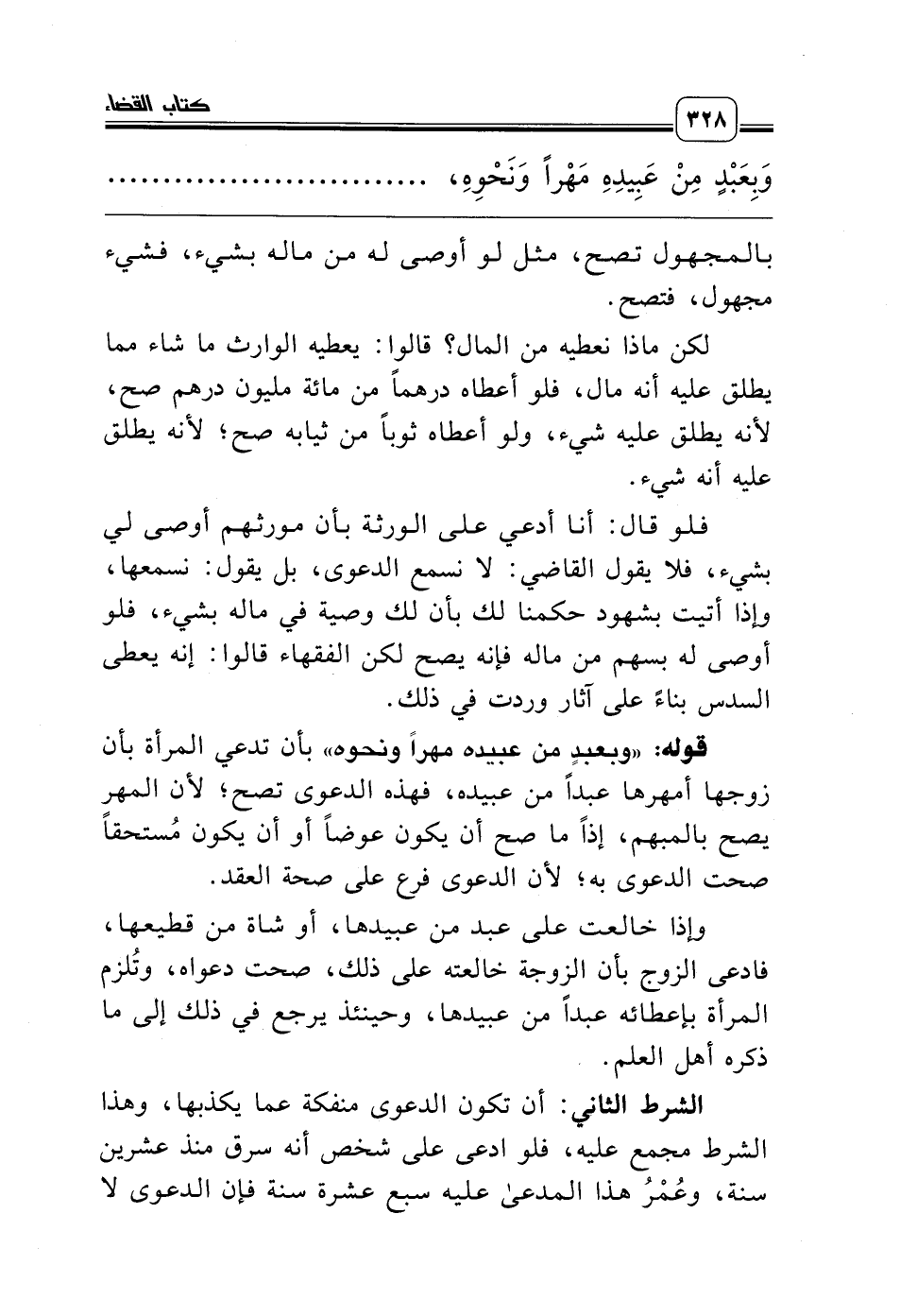 قوله: «وبعبدٍ من عبيده مهراً ونحوه» بأن تدعي المرأة بأن زوجها أمهرها عبداً من عبيده، فهذه الدعوى تصح؛ لأن المهر يصح بالمبهم، إذاً ما صح أن يكون عوضاً أو أن يكون مُستحقاً صحت الدعوى به؛ لأن الدعوى فرع على صحة العقد.