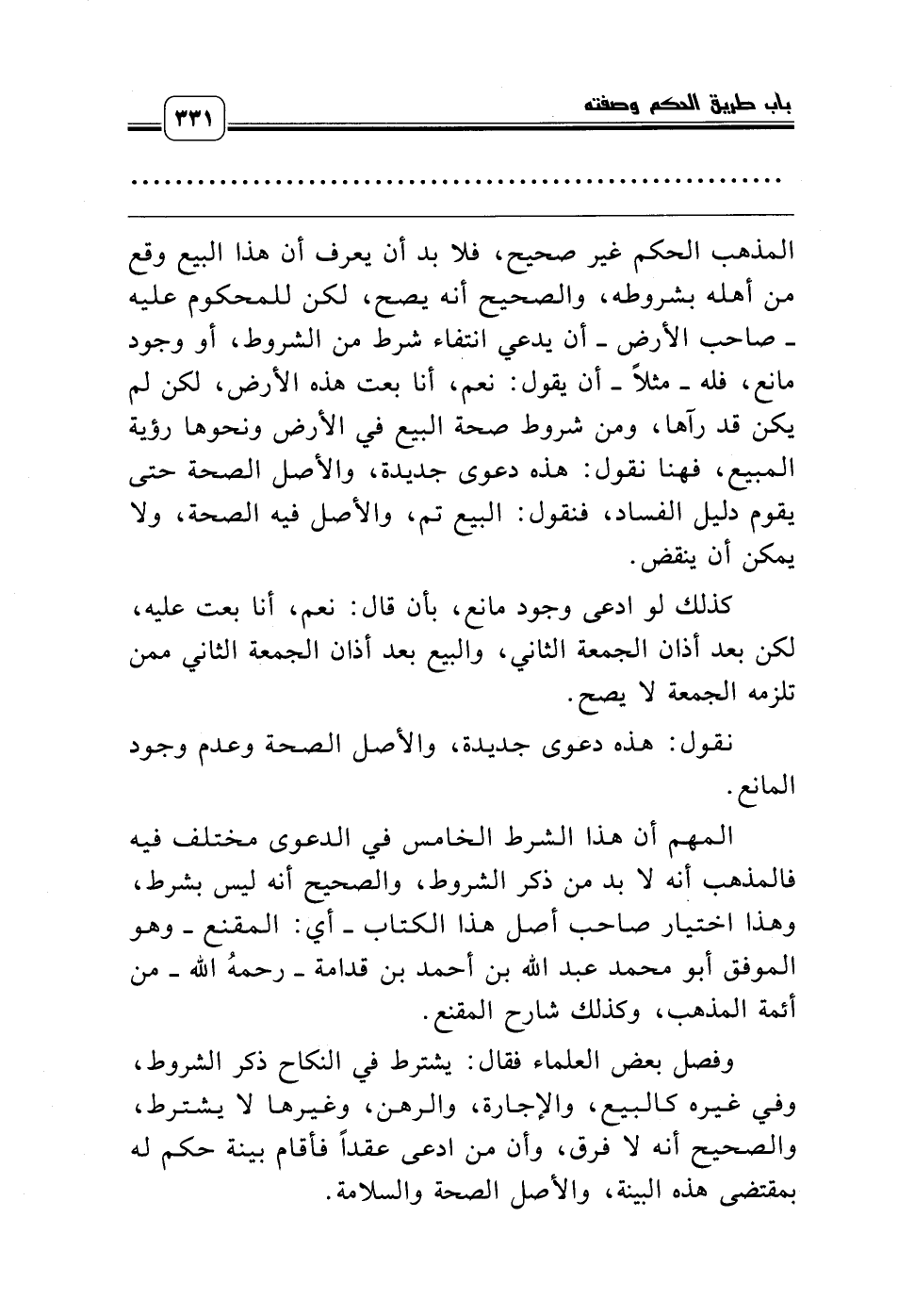 المهم أن هذا الشرط الخامس في الدعوى مختلف فيه فالمذهب أنه لا بد من ذكر الشروط، والصحيح أنه ليس بشرط، وهذا اختيار صاحب أصل هذا الكتاب ـ أي: المقنع ـ وهو الموفق أبو محمد عبد الله بن أحمد بن قدامة ـ رحمه الله ـ من أئمة المذهب، وكذلك شارح المقنع.