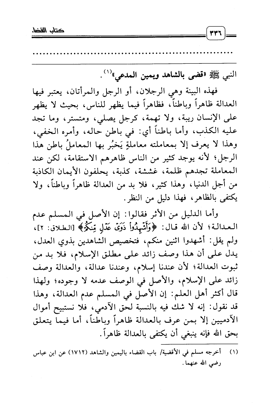 (¬1) أخرجه مسلم في الأقضية/ باب القضاء باليمين والشاهد (1712) عن ابن عباس رضي الله عنهما.