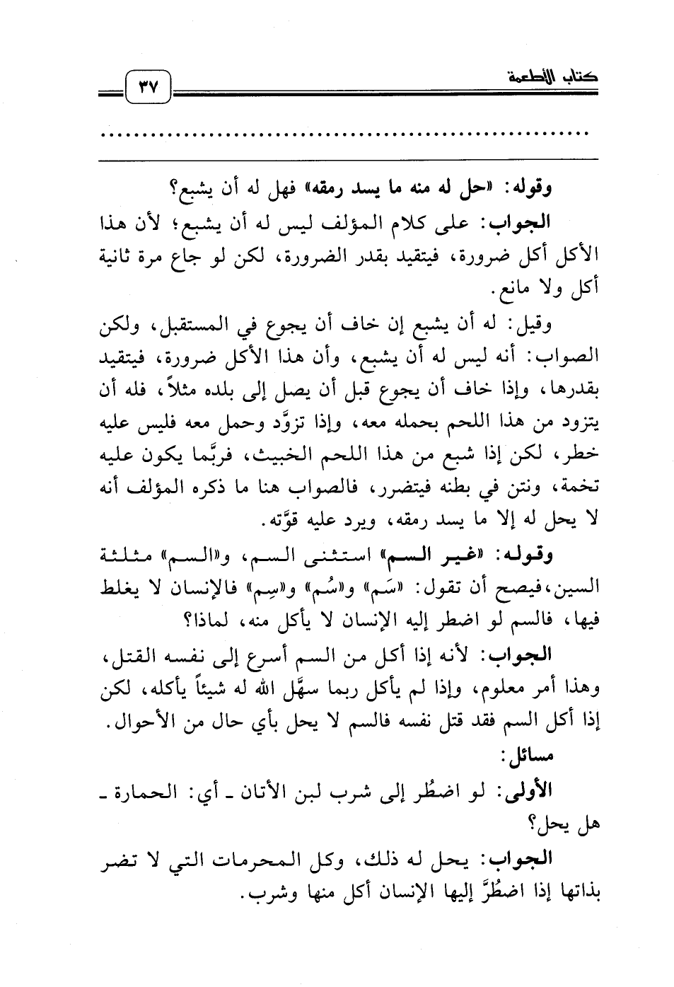 وقوله: «غير السم» استثنى السم، و «السم» مثلثة السين، فيصح أن تقول: «سَم» و «سُم» و «سِم» فالإنسان لا يغلط فيها، فالسم لو اضطر إليه الإنسان لا يأكل منه، لماذا؟