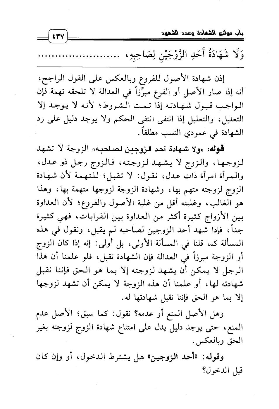 به عند السؤال، وإلا فإن الله ـ جلَّ وعلا ـ يقول: {وَاسْتَشْهِدُوا شَهِيدَيْنِ مِنْ رِجَالِكُمْ} [البقرة: 282]، وهؤلاء من رجالنا، {وَأَشْهِدُوا ذَوَيْ عَدْلٍ مِنْكُمْ} [الطلاق: 2]، وهؤلاء من ذوي العدل، سواء قلنا: إن العدل استقامة الدين والمروءة مطلقاً، أو قلنا: إن العدل هو العدل في تلك الشهادة المعينة كما ذكره شيخ الإسلام ابن تيمية رحمه الله، فنقول: إذا كان هذا الأب مبرزاً في العدالة، لا يمكن أن يشهد لابنه إلا بشيء هو الواقع، ونعلم هذا من حاله، فنقول: هذا الرجل ذو عدل في هذه الشهادة؛ لأنه غير متهم، فننظر إلى كل قضية بعينها، لا سيما إذا وجدت قرائن تؤيد ما شهدوا به فإن هذا يكون نوراً على نور، فعلى هذا القول نقول: هل الأصل القبول أو الأصل المنع؟ إذا قلنا: الأصل القبول صرنا لا نرد شهادتهم حتى نعلم التهمة، وإذا قلنا: الأصل المنع صرنا نمنع شهادتهم حتى توجد قرينة قوية، وهي بروزه في العدالة بحيث لا يشهد إلا بما هو حق، والظاهر أن الأصل التهمة لا سيما في زمننا هذا، وبناءً على ذلك نقول: إذا ثبت أنه مبرز في العدالة، وأنه لا يمكن أن يشهد إلا بحق فحينئذٍ تقبل الشهادة.