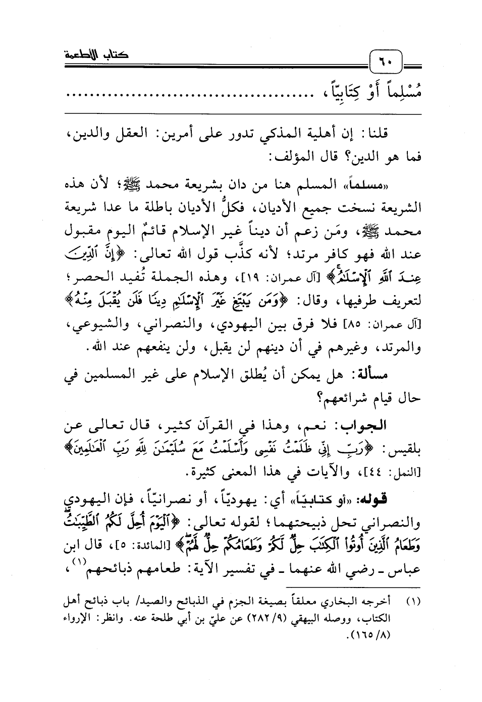 قلنا: إن أهلية المذكي تدور على أمرين: العقل والدين، فما هو الدين؟ قال المؤلف: