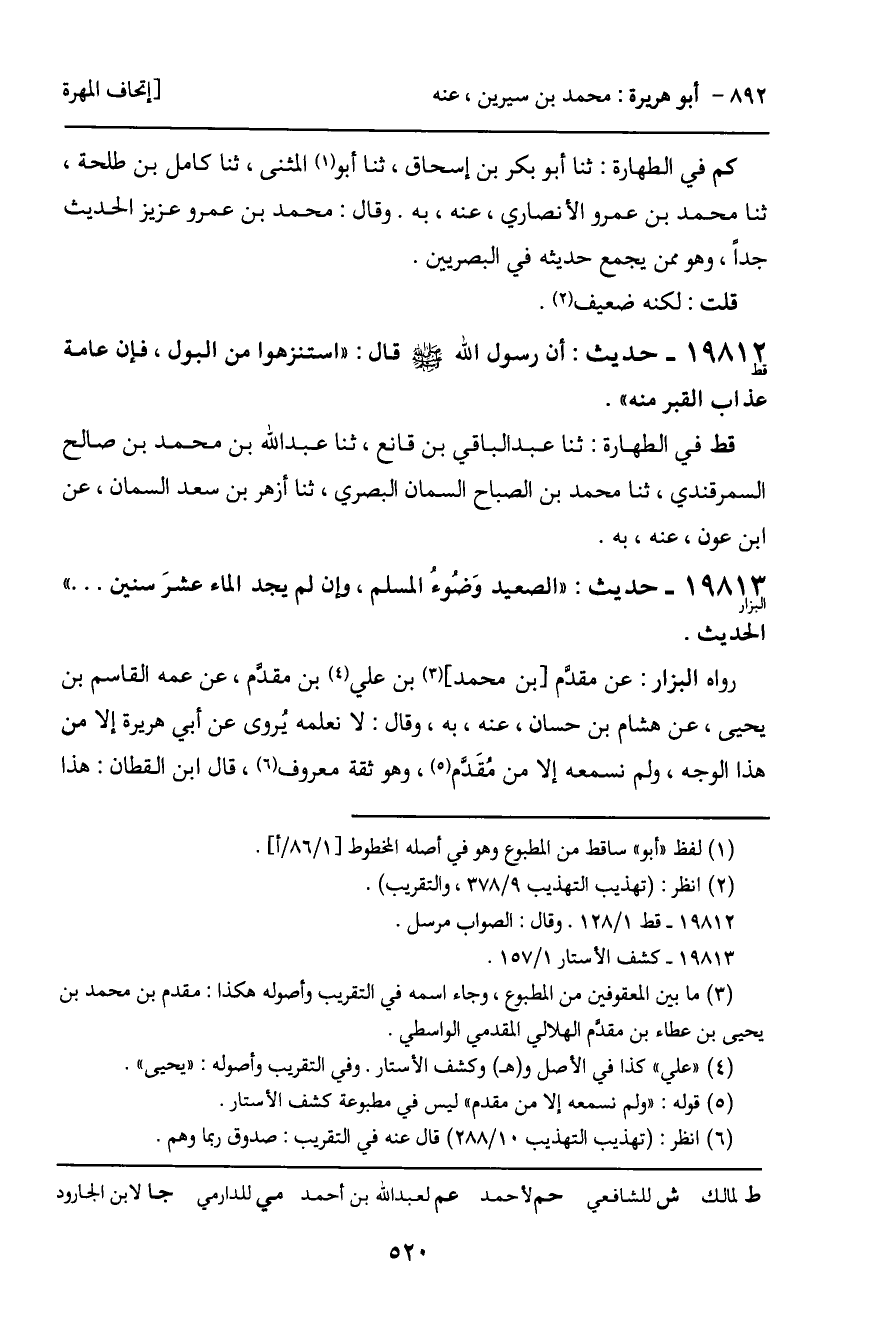 قط في الطهارة: ثنا عبد الباقي بن قانع، ثنا عبد الله بن محمد بن صالح السمرقندي، ثنا محمد بن الصباح السمان البصري، ثنا أزهر بن سعد السمان، عن ابن عون، عنه، به.