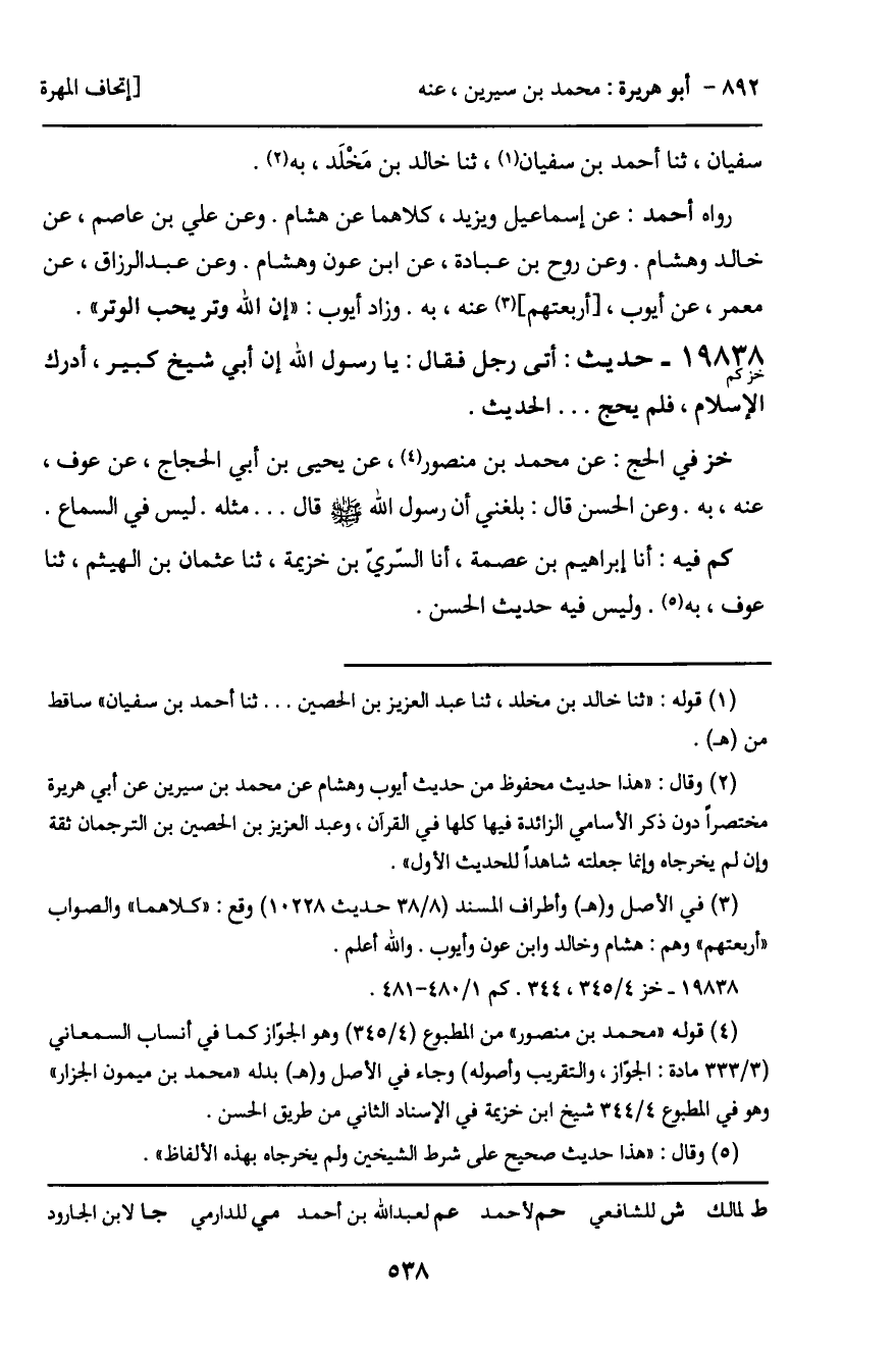 خز في الحج: عن محمد بن منصور، عن يحيى بن أبي الحجاج، عن عوف، عنه، به. وعن الحسن قال: بلغني أن رسول الله - صَلَّى اللَّهُ عَلَيْهِ وَسَلَّمَ - قال ... مثله. ليس في السماع.