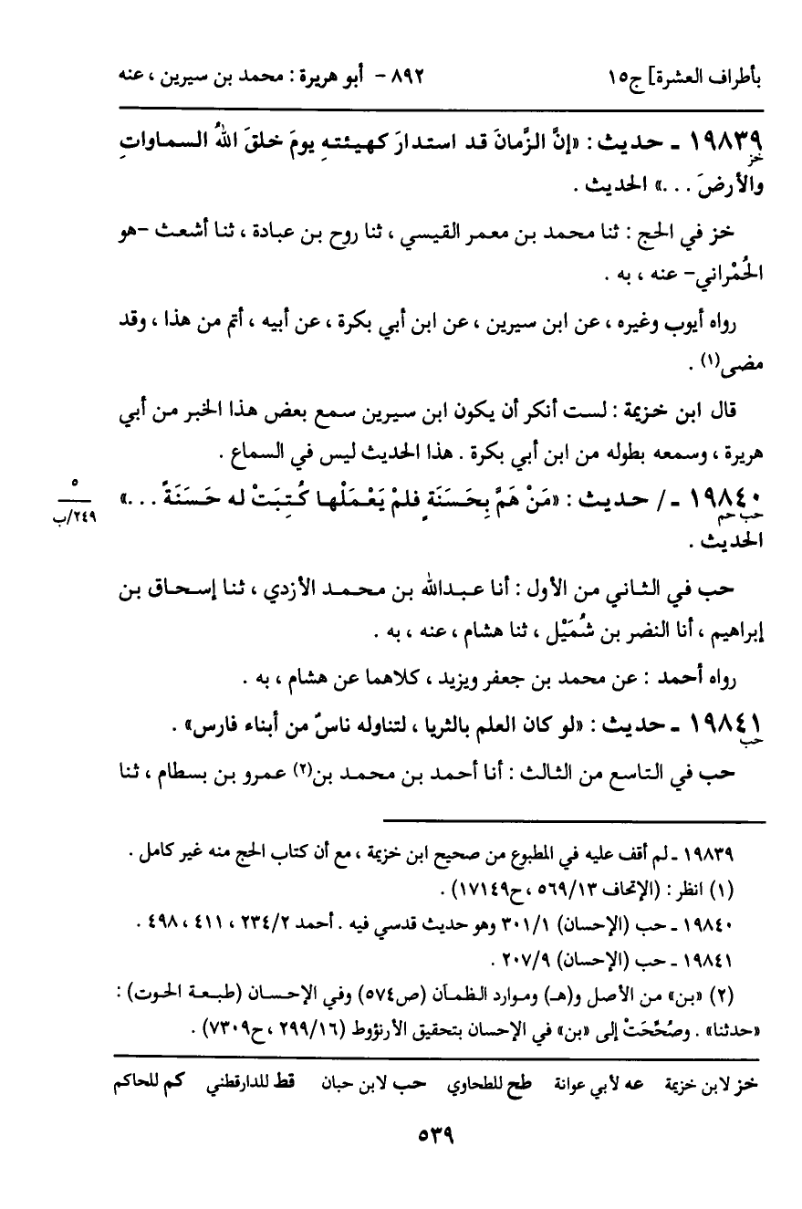 19839 - حديث (خز) : "إن الزمانَ قد استدار كهيئته يومَ خلقَ الله السماوات والأرضَ ... " الحديث.