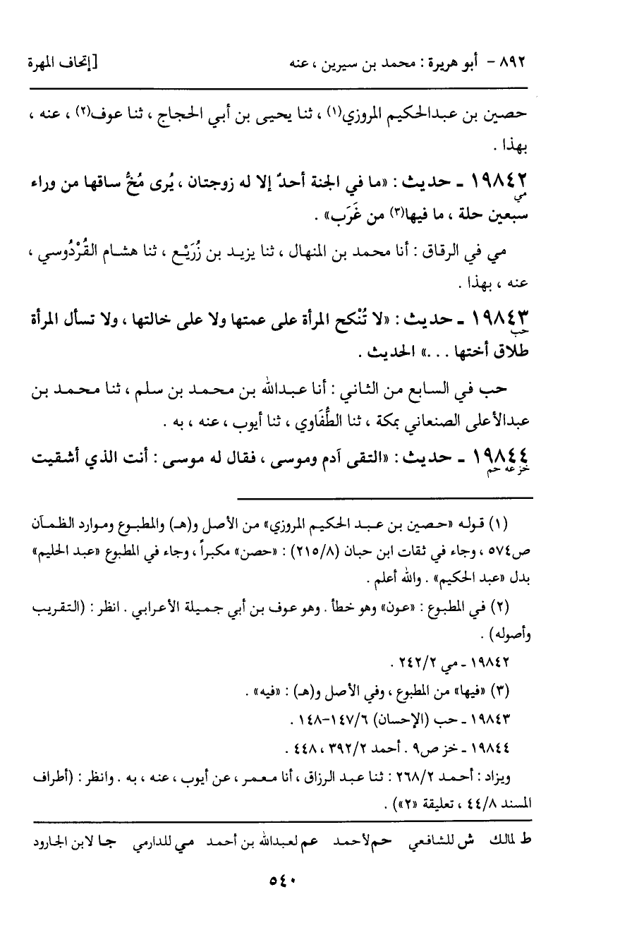 19844 - حديث (خز عه حم) : "التقى آدم وموسى، فقال له موسى: أنت الذي أشقيت