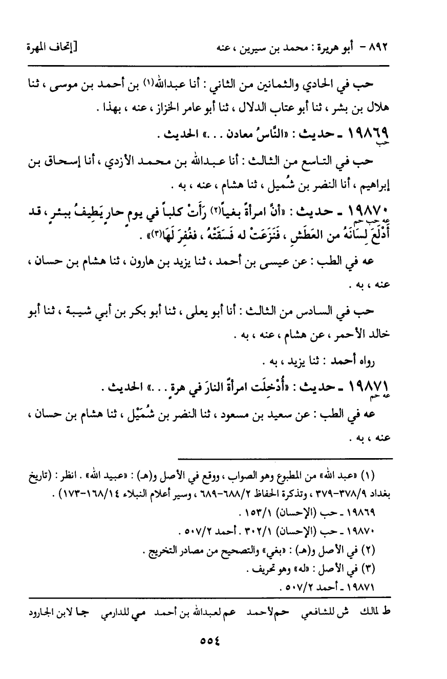 19869 - حديث (حب) : "الناس معادن ... " الحديث.