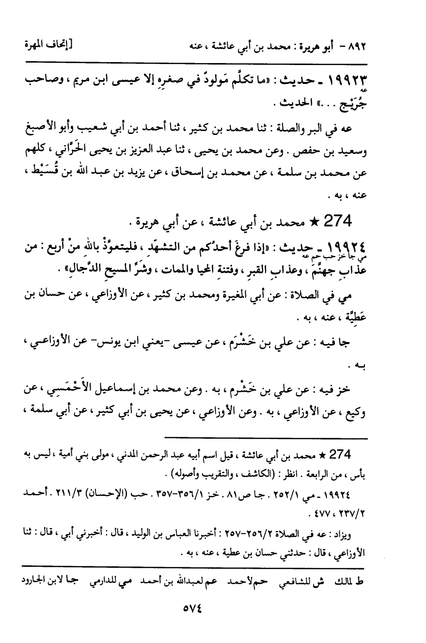 -[575]- عن أبي هريرة، مثله. وعن هارون بن إسحاق، عن مَخْلَد بن يزيد الحَراني، عن الأوزاعي نحوه، قال: وفي حديث عيسى: سمعت أبا هريرة.