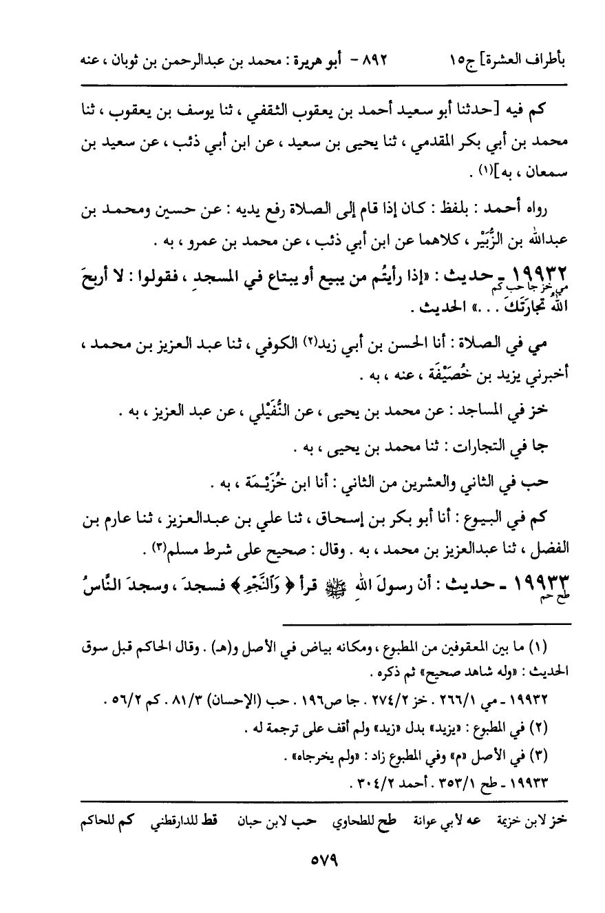 19932 - حديث (مي خز جا حب كم) : "إذا رأيتُم من يبيع أو يبتاع في المسجد، فقولوا: لا أربحَ اللهُ تجارَتَكَ ... " الحديث.