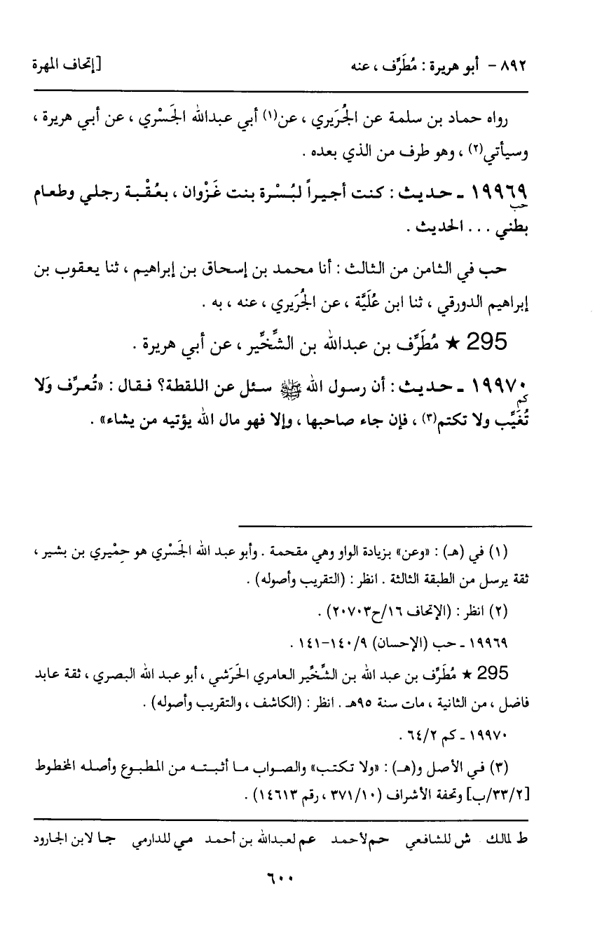 ـ مُطَرف بن عبد الله بن الشِّخير، عن أبي هريرة.