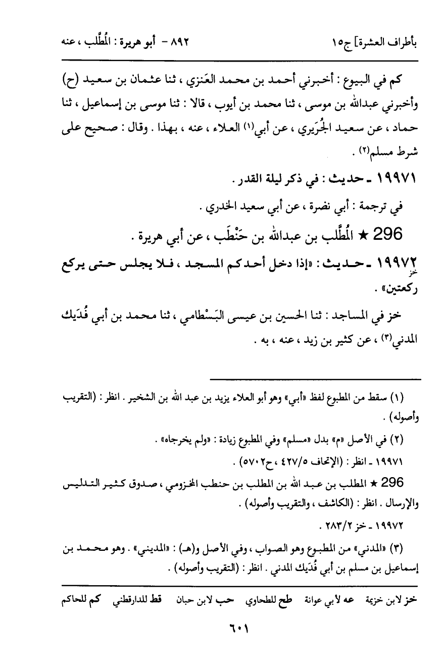 19972 - حديث (خز) : "إذا دخل أحدكم المسجد، فلا يجلس حتى يركع ركعتين".