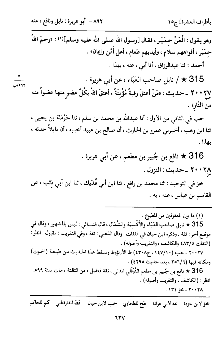 ـ نافع بن جُبير بن مطعم، عن أبي هريرة.