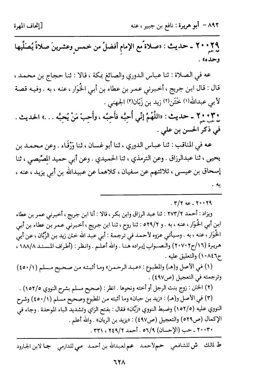 20030 - حديث (عه حب حم) : "اللهم إني أحبه فأَحبَّه، وأَحبّ مَنْ يحبه ... " الحديث.