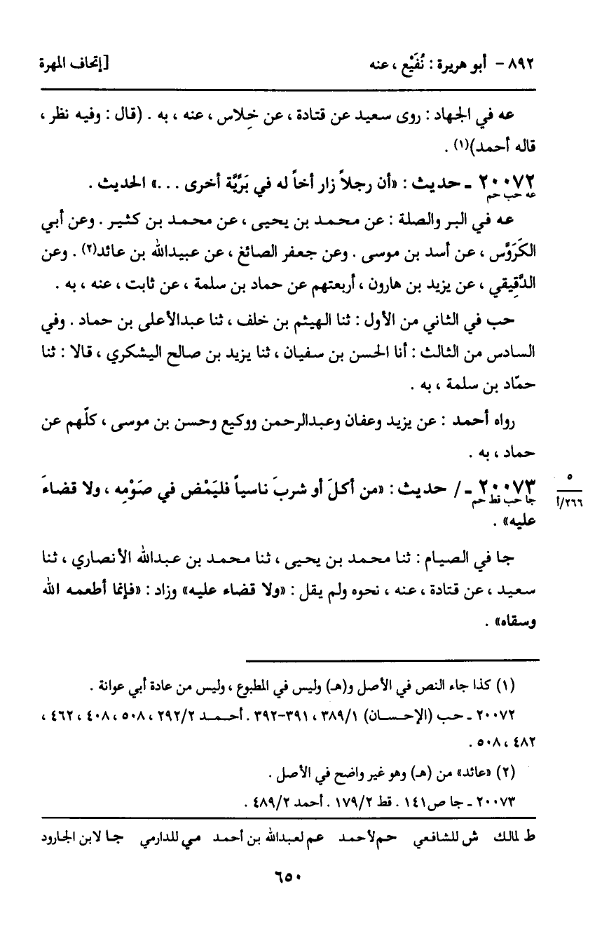حب في الثاني من الأول: ثنا الهيثم بن خلف، ثنا عبد الأعلى بن حماد. وفي السادس من الثالث: أنا الحسن بن سفيان، ثنا يزيد بن صالح اليشكري، قالا: ثنا حمّاد بن سلمة، به.