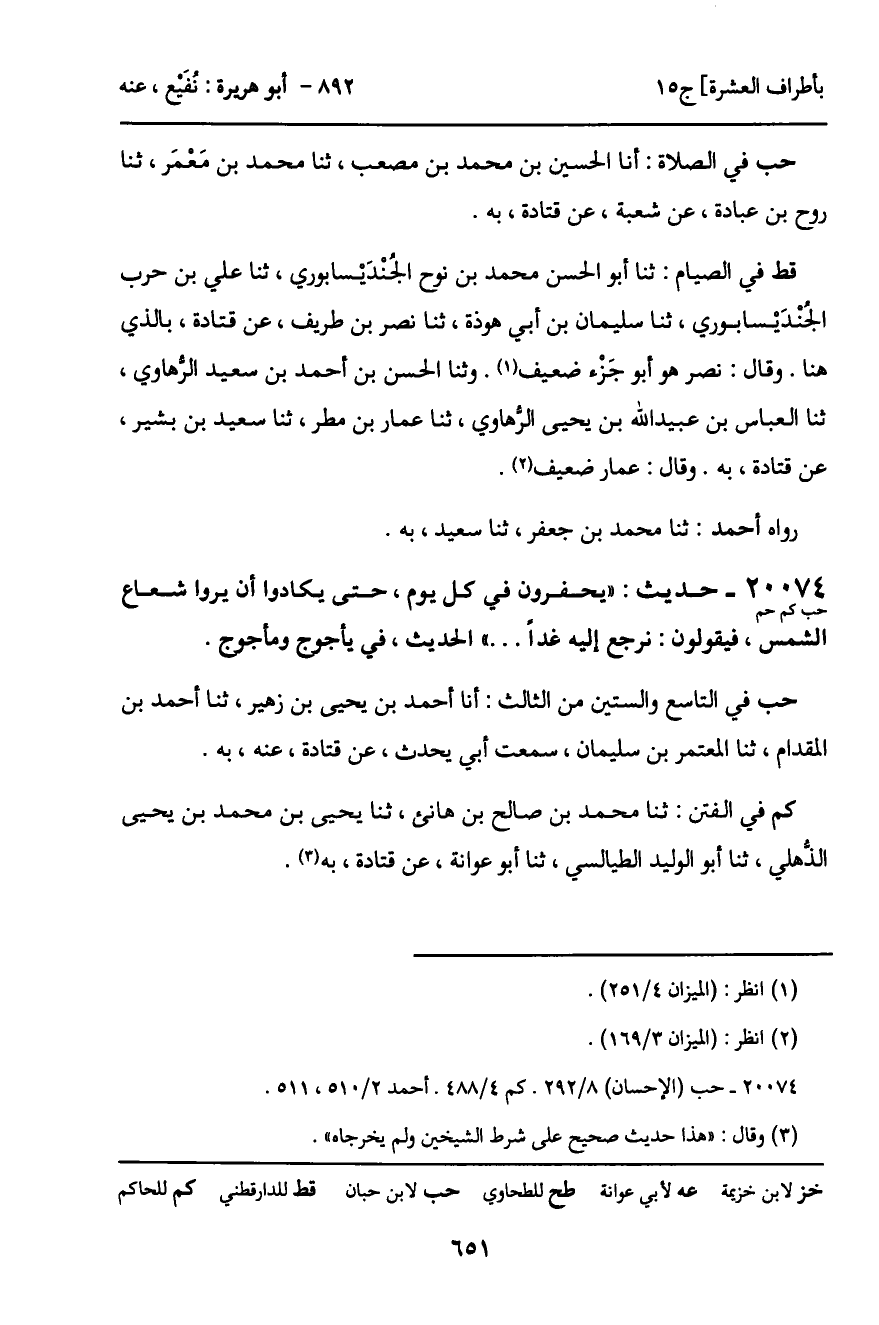 كم في الفتن: ثنا محمد بن صالح بن هانئ، ثنا يحيى بن محمد بن يحيى الذهلي، ثنا أبو الوليد الطيالسي، ثنا أبو عوانة، عن قتادة، به.
