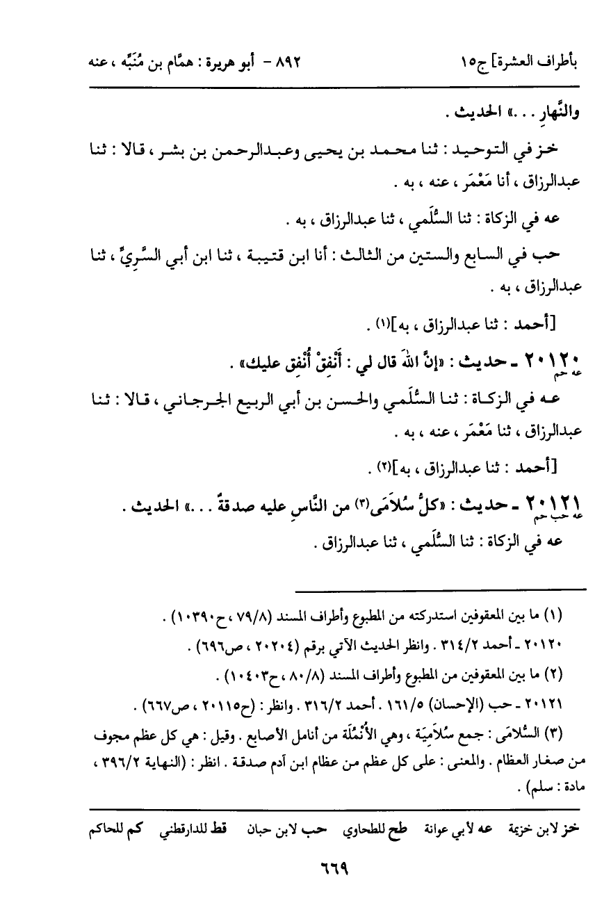 20121 - حديث (عه حب حم) : "كل سلامَى من الناس عليه صدقة ... " الحديث.