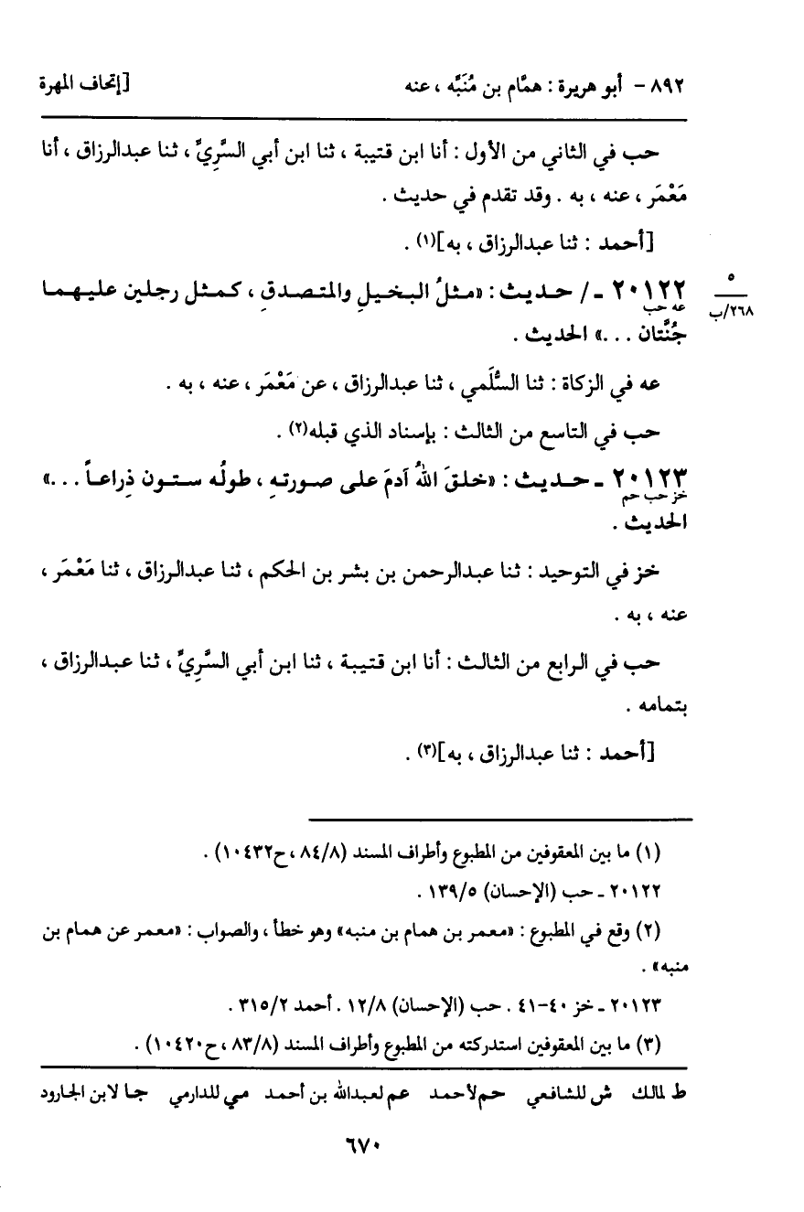 20123 - حديث (خز حب حم) : "خلقَ الله آدم على صورته، طولُه ستون ذراعاً ... " الحديث.