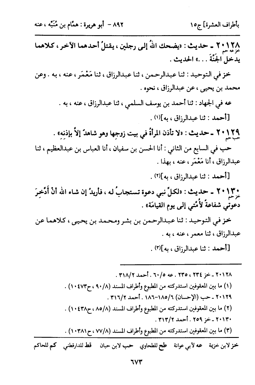 20128 - حديث (خز عه حم) : "يضحك الله إلى رجلين، يقتل أحدهما الآخر، كلاهما يدخل الجنة ... " الحديث.