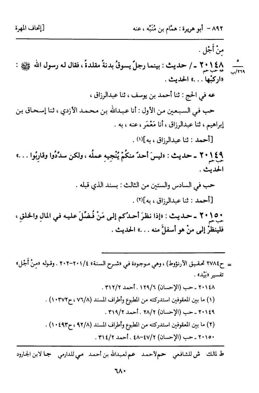 20148 - حديث (عه حب حم) : بينما رجل يسوقُ بدنةً مقلدة، فقال له رسول الله - صَلَّى اللَّهُ عَلَيْهِ وَسَلَّمَ -: "اركبْها ... " الحديث.
