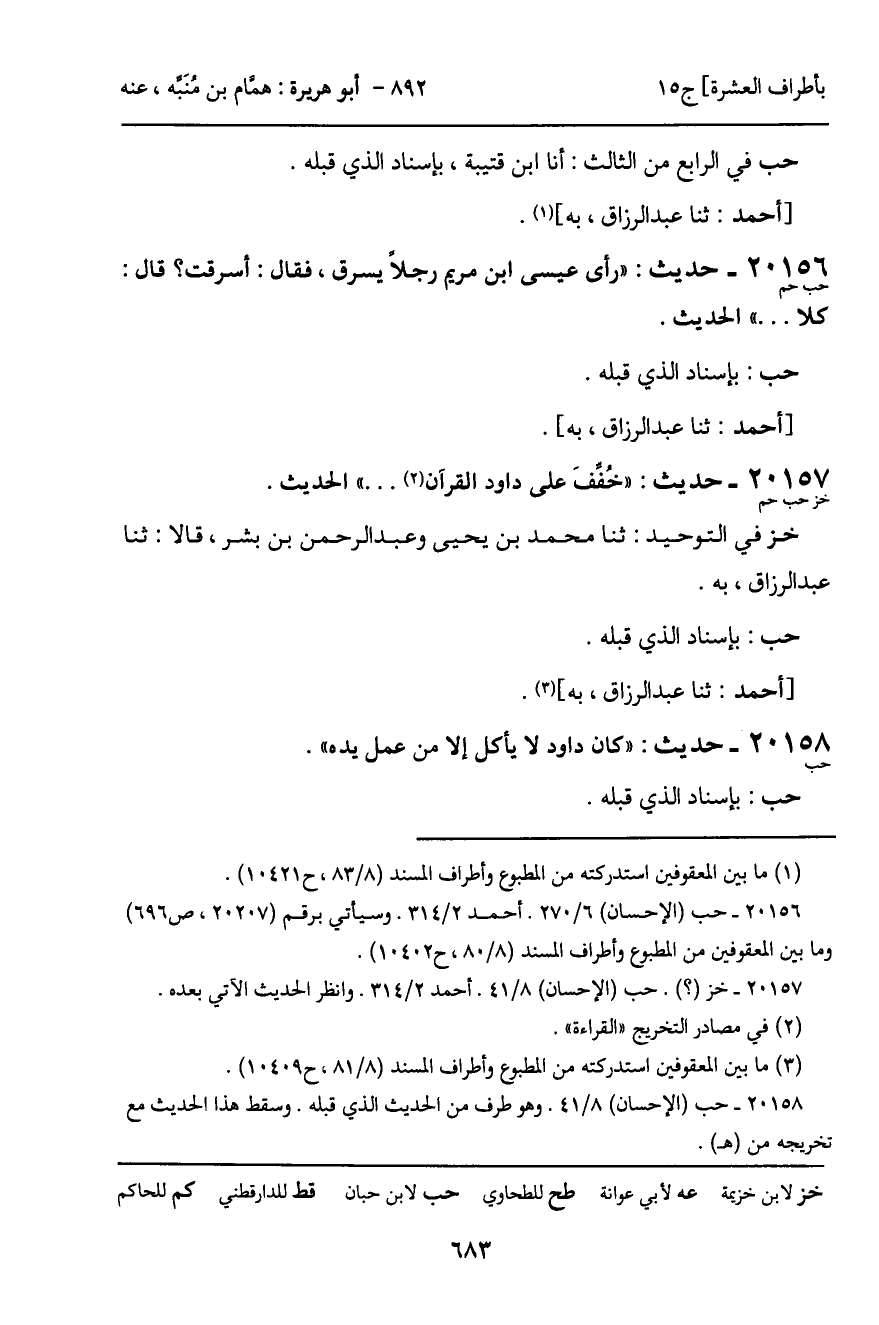 20157 - حديث (خز حب حم) : "خُففَ على داود القرآن ... " الحديث.