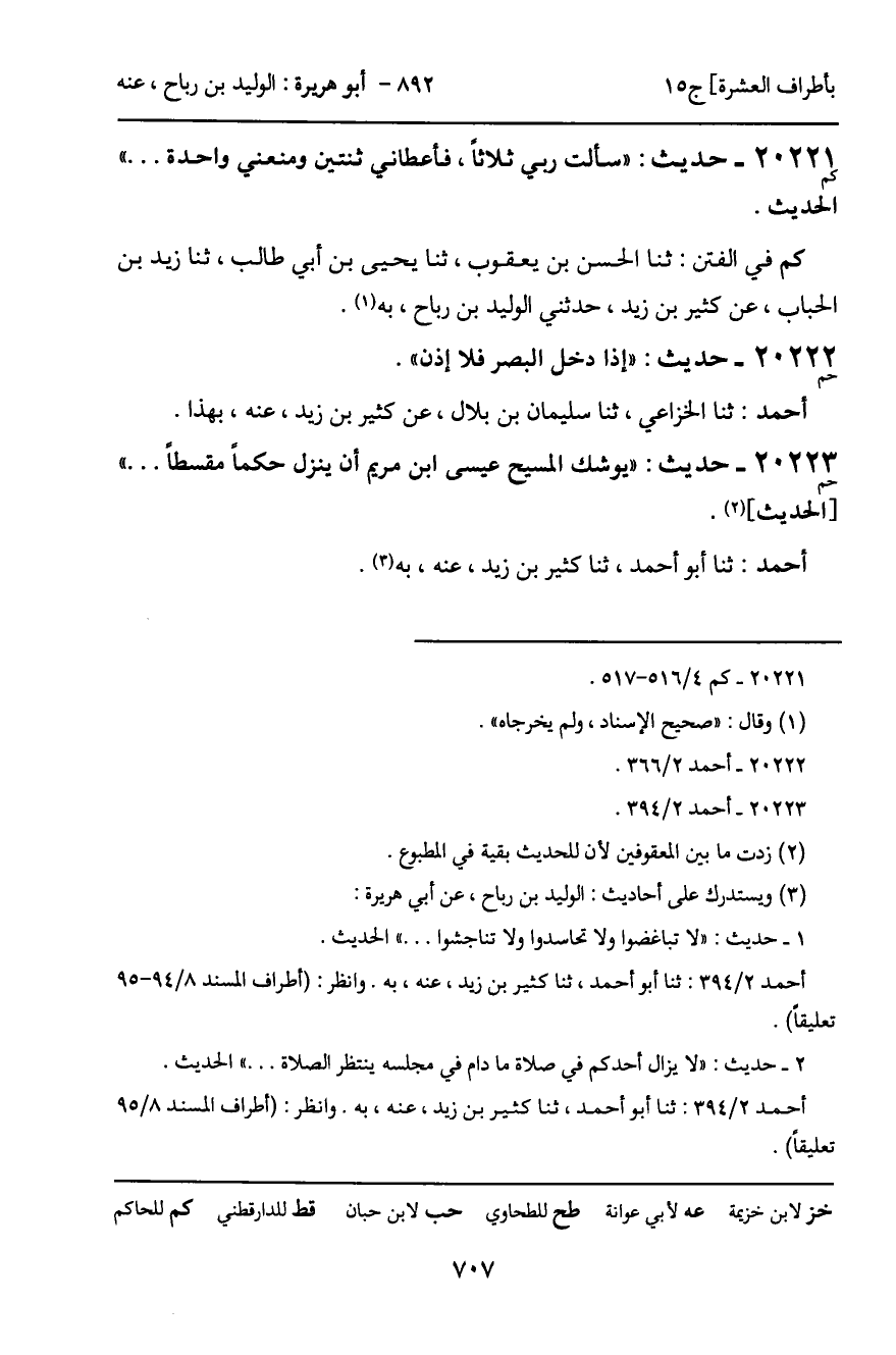 20221 - حديث (كم) : "سألت ربي ثلاثاً، فأعطاني ثنتين ومنعني واحدة ... " الحديث.