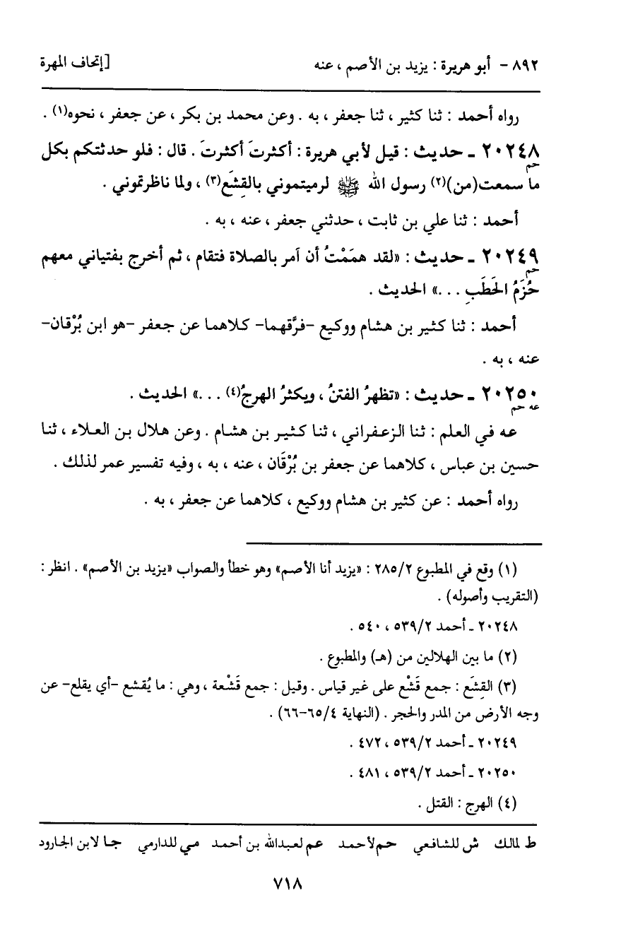 20250 - حديث (عه حم) : "تظهر الفتن، ويكثرُ الهرجُ ... " الحديث.