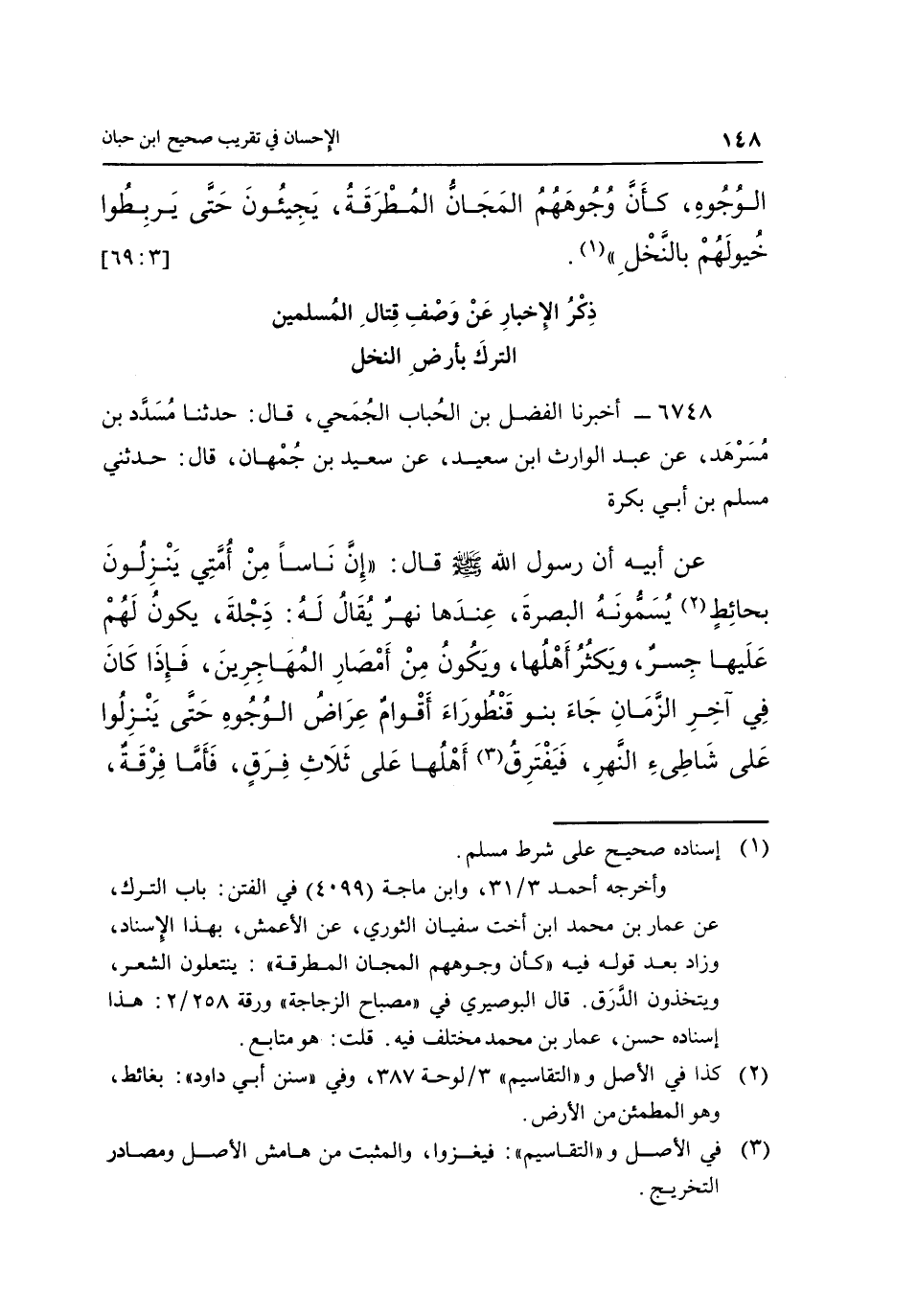 ذِكْرُ الْإِخْبَارِ عَنْ وَصْفِ قِتَالِ الْمُسْلِمِينَ التُّرْكَ بِأَرْضِ النَّخْلِ